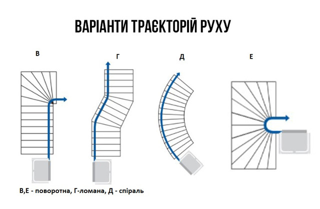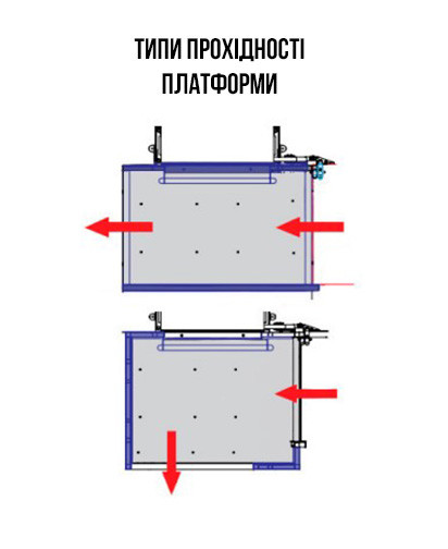 Підйомник може бути з прямим або боковим заїздом в залежності від того, як людина рухається по платформі.